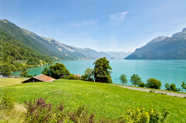 Vom Bahnhof in Meiringen fuhr der Zug entlang des Ufers des Brienzersees zurück nach Interlaken Ost.