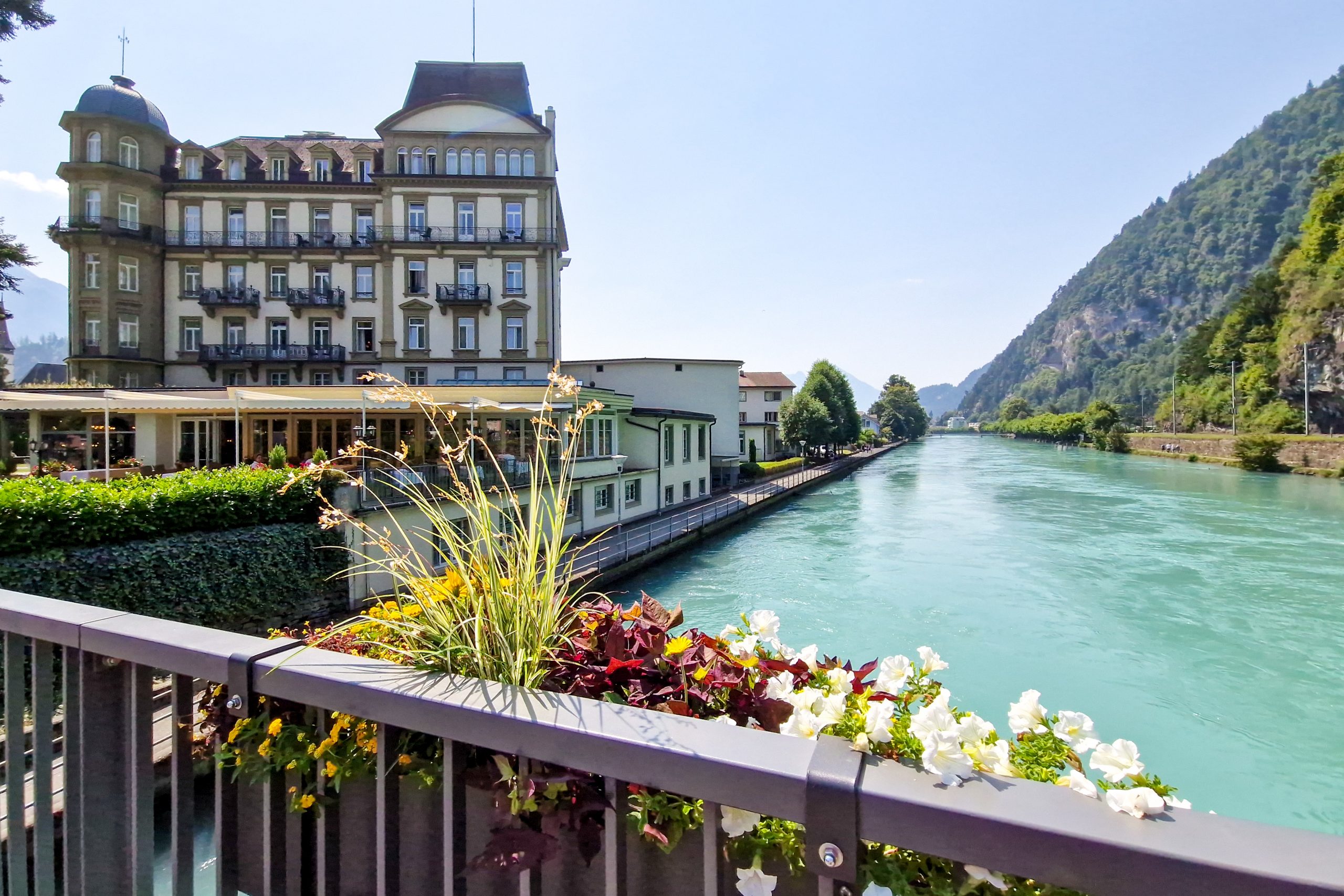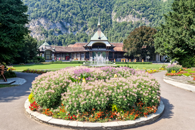 Da es noch recht früh am Nachmittag war, nutzte ich die Gelegenheit für einen Bummel durch Interlaken von Ost nach West, der Aare folgend, die hier den Brienzer- mit dem Thunersee verbindet. Kleine Parks mit üppiger Blumenpracht, ein Spielcasino, einige Souvenirläden und noch mehr Uhrengeschäfte säumten den Weg.