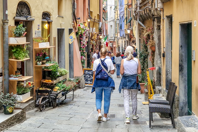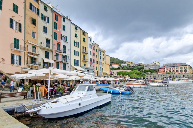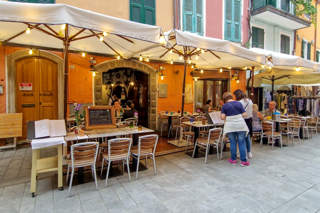 Am Ziel angekommen bestärkte uns ein Schild, das ein komplett belegtes Parkhaus verkündete, in unserer Entscheidung, den Mietwagen stehen gelassen zu haben. Der Ort bietet alles, was das Touristenherz begehrt: einen malerischen Hafen, in dem sich bunte Fischerboote sanft im türkisblauen Wasser wiegen, pastellfarbene Häuser, die sich an den Hang schmiegen, und verwinkelte Altstadtgassen voller Souvenirläden und Restaurants, die lokale Spezialitäten wie Focaccia und Pesto Genovese anbieten.