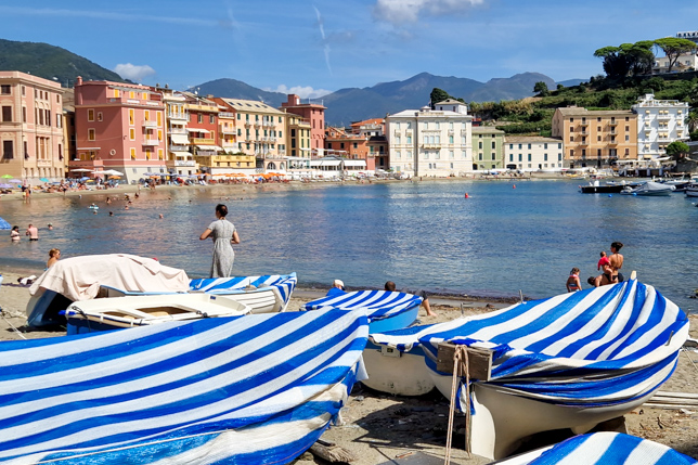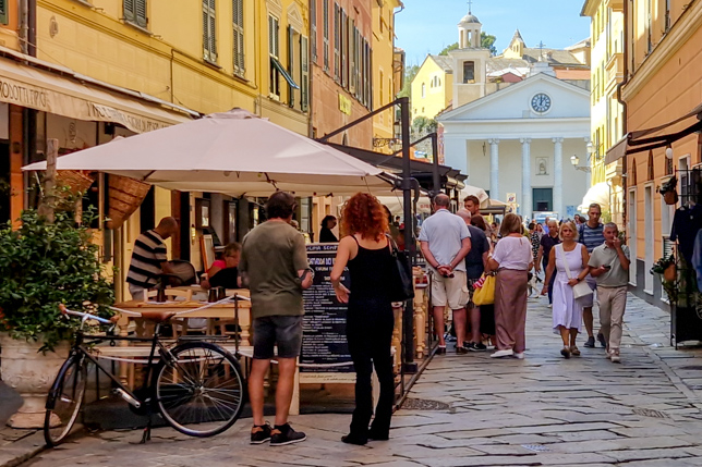 Die beschauliche Altstadt von Sestri Levante erstreckt sich unterhalb einer ehemaligen Felseninsel, die inzwischen verlandet ist und die Stadt in zwei reizvolle Hälften teilt – beide gesäumt von breiten Sandstränden. Vom Parkplatz aus schlenderten wir durch die verkehrsberuhigte Altstadtgasse Via XXV Aprile: Der Straßenname erinnert an den italienischen Nationalfeiertag am 25. April, an dem die Befreiung Italiens vom Faschismus und Nationalsozialismus gefeiert wird.