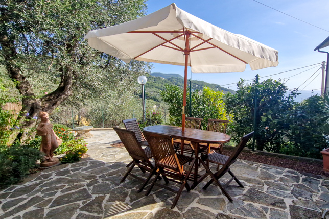 Nach dem Einchecken war unsere erste Aktion, den Sonnenschirm aufzuspannen und so schattige Plätze auf der Terrasse zu schaffen. Von hier aus genießen wir einen traumhaften Blick hinunter zum Meer in Richtung Moneglia. Zum Glück ist von der nur wenige Meter oberhalb unserer Unterkunft verlaufenden Autobahnbrücke praktisch nichts zu hören. Die einzige “Lärmquelle” sind die einheimischen Autofahrer, die auf dem Weg nach Moneglia vor jeder scharfen Kurve warnen hupen.