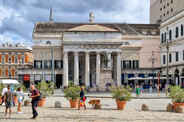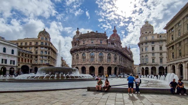 Unseren Rundgang starteten wir an der zentralen Piazza de Ferrari, einem Verbindungsstück zwischen Altstadt und neueren Stadtvierteln. Hier gruppieren sich das Opernhaus Teatro Carlo Felice, der monumentale Bau der neuen Börse, der Ostflügel des Palazzo Ducale und der Sitz des Regionalrats von Ligurien rund um die prächtige Fontäne. Cafés und Bars laden Besucher zum Verweilen ein. Von hier aus tauchten wir ins Herz der Altstadt ein.