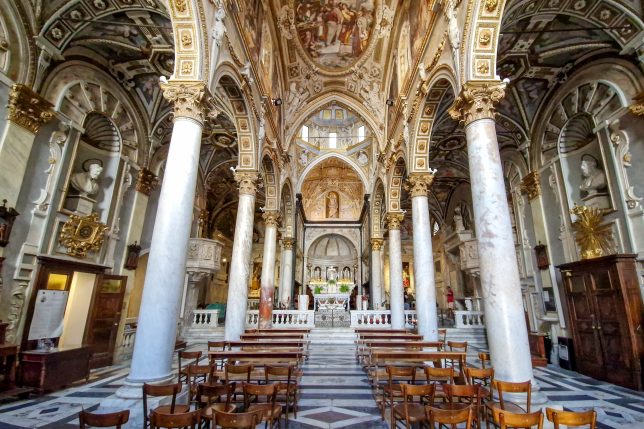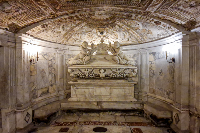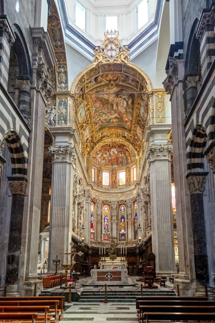 Das Innere ist überbordend mit Stuck, Fresken und Skulpturen ausgeschmückt. Die Aufsichtsperson in der Kirche war so freundlich, uns vieles zu erklären – leider auf Italienisch, sodass wir nicht wirklich viel verstanden. Aber irgendwie konnten wir mit Händen und Füßen das Wesentliche begreifen. Schließlich führte sie uns hinab in die Krypta, in der Andrea Doria bestattet ist.