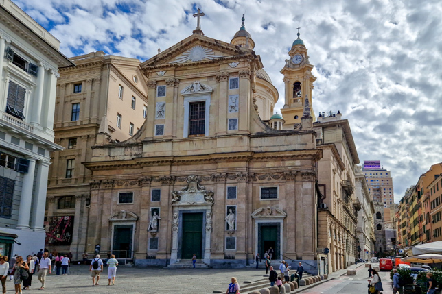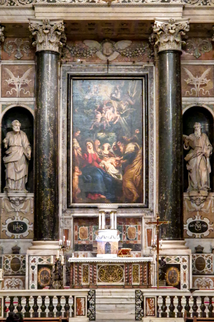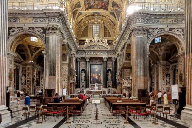 Nur wenige Schritte weiter reckt die Chiesa del Gesù ihre barocke Fassade und ihre Türme in die Höhe. Das Innere ist reich mit Gold, Marmor und Stuck ausgekleidet – und wäre das nicht schon Reichtum genug, so finden sich in der Kirche zwei Werke von Peter Paul Rubens: „Die Beschneidung Jesu” und „Das Wunder des hl. Ignatius”.