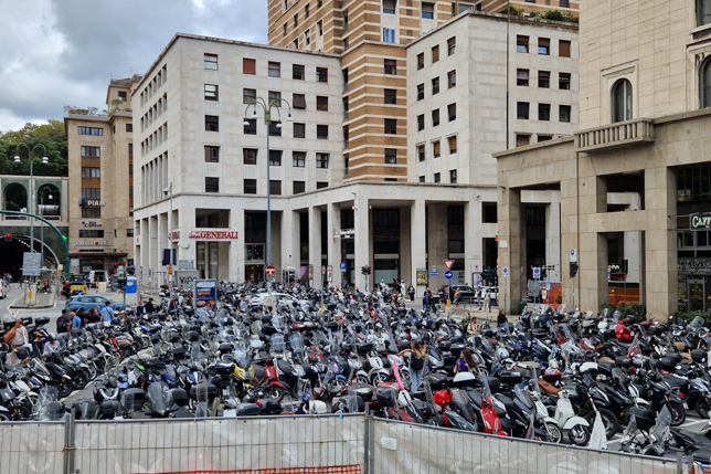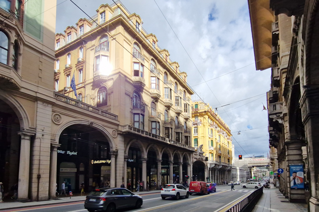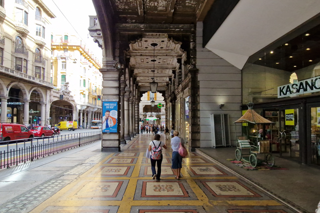 Boutiquen und Kaufhäuser, Kinos und Cafés locken Besucher auf der Via XX. Settembre zu einem Spaziergang unter den prunkvollen Arkadengängen.