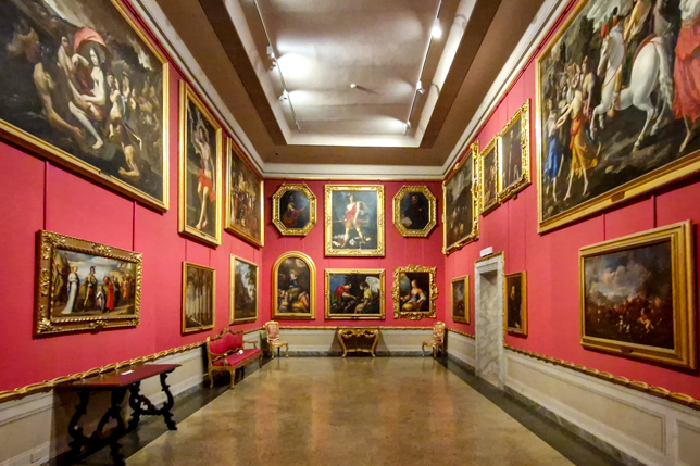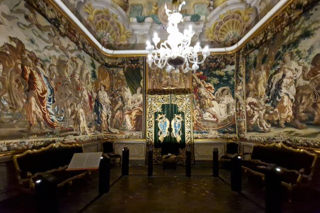Auf die Gemäldesammlung, die der Stadt 1847 von Leopold II. von Lothringen geschenkt wurde, warfen wir nur einen flüchtigen Blick und gingen stattdessen weiter zu den vier Paraderäumen, die rundum mit kostbaren flämischen Wandteppichen behangen sind.