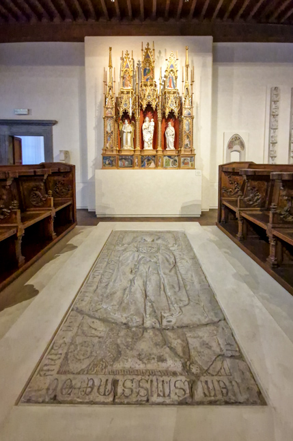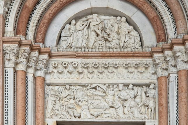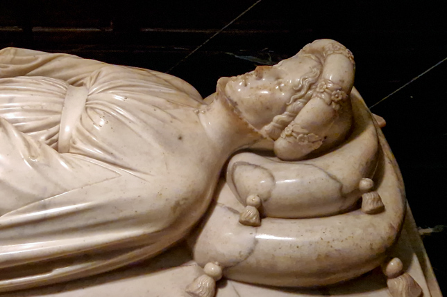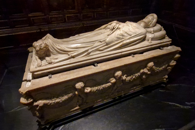 In der Sakristei findet sich ein weiteres herausragendes Kunstwerk vom Anfang des 15. Jahrhunderts: das marmorne Grabmal der Ilaria del Carretto, der Frau Paolo Guinigis, die bei der Geburt ihrer Tochter 1405 starb. Seit Jahrhunderten verzaubert die unvergängliche Schönheit der jungen Frau die Besucher. Zu ihren Füßen wacht ein Hund – ein Symbol der ehelichen Treue.