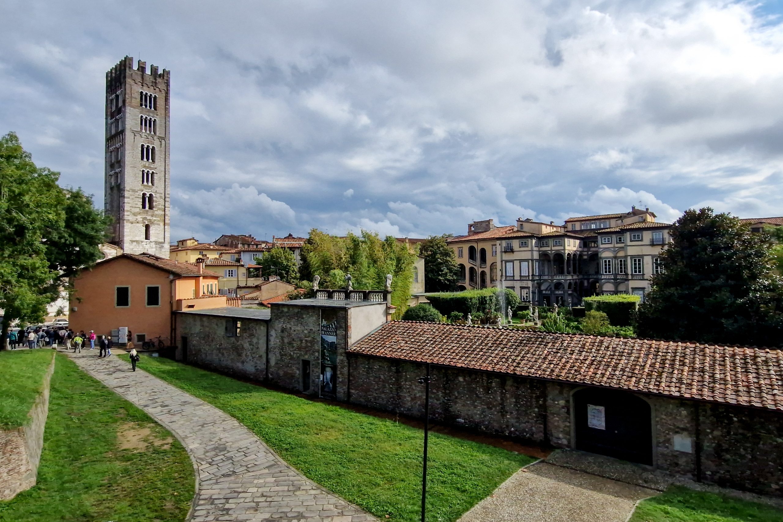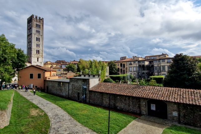 Beim Rückweg nahmen wir einen kleinen Umweg, um ein Stück des Weges über die Stadtmauer von Lucca zu nehmen. Auf dem Weg von der Porta Santa Maria bis zur Porta San Donato im Westen nutzten viele Lucca-Besucher das deutlich bessere Wetter am Nachmittag für einen kleinen Spaziergang.