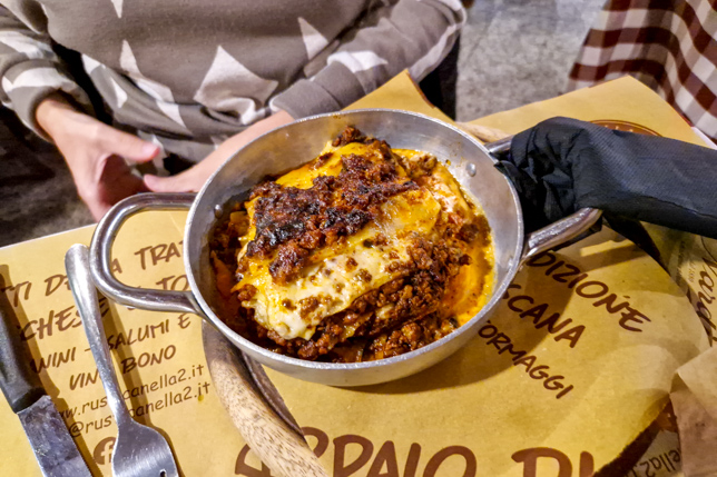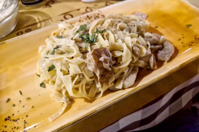 Zum letzten Abendessen unseres Urlaubs machten wir uns auf zum Ristorante Rusticanella2, wo wir bereits am Nachmittag einen Tisch für 18 Uhr reserviert hatten. Harte Rockmusik aus dem Sender Radiofreccia begrüßte uns im Innern, und schon nach kurzer Zeit standen Nudeln mit Steinpilzen, die wir schon so oft unterwegs an Gemüseständen gesehen hatten, und eine Lasagne auf unserem Tisch.