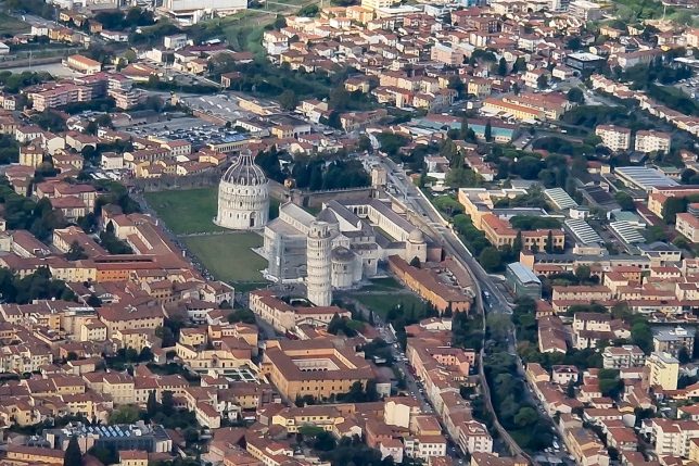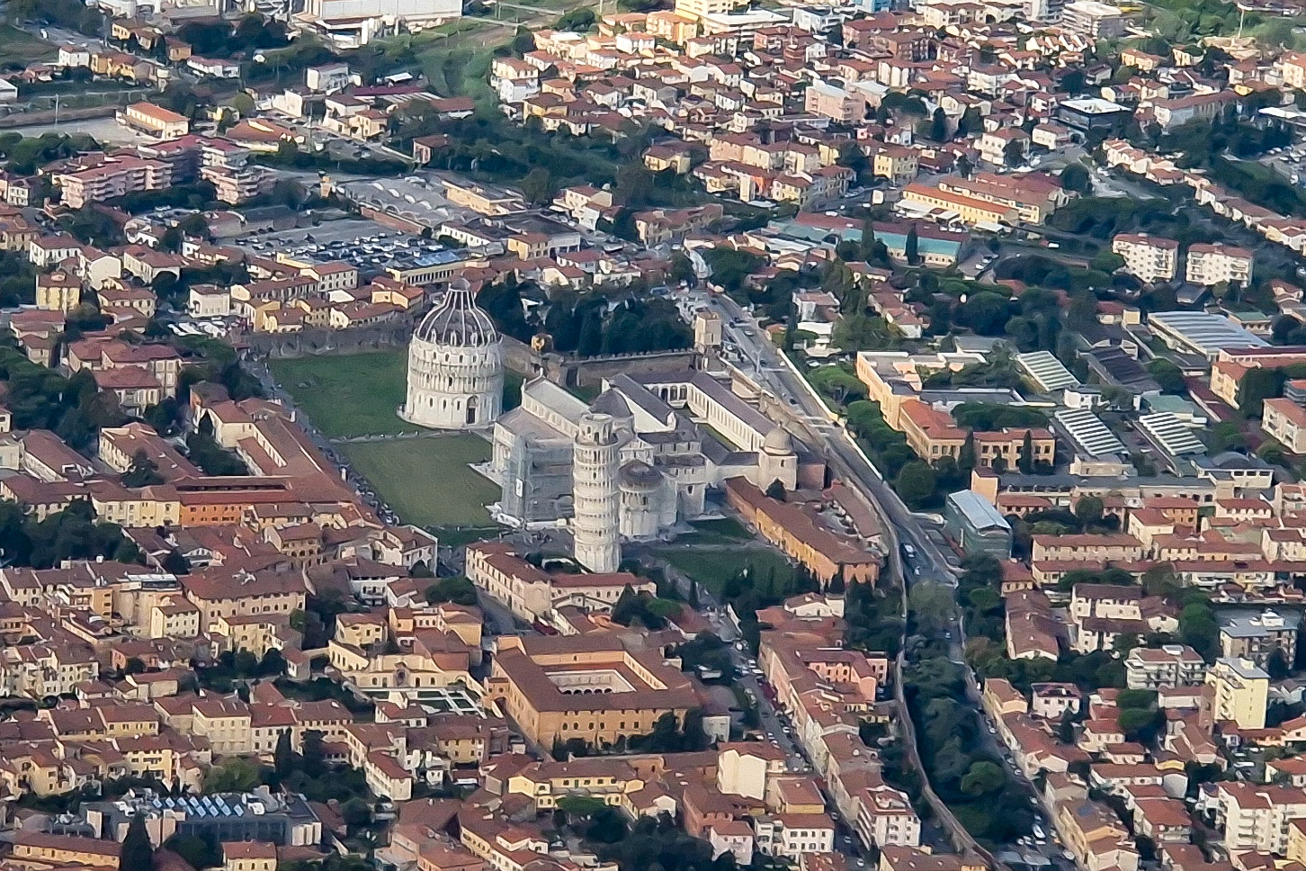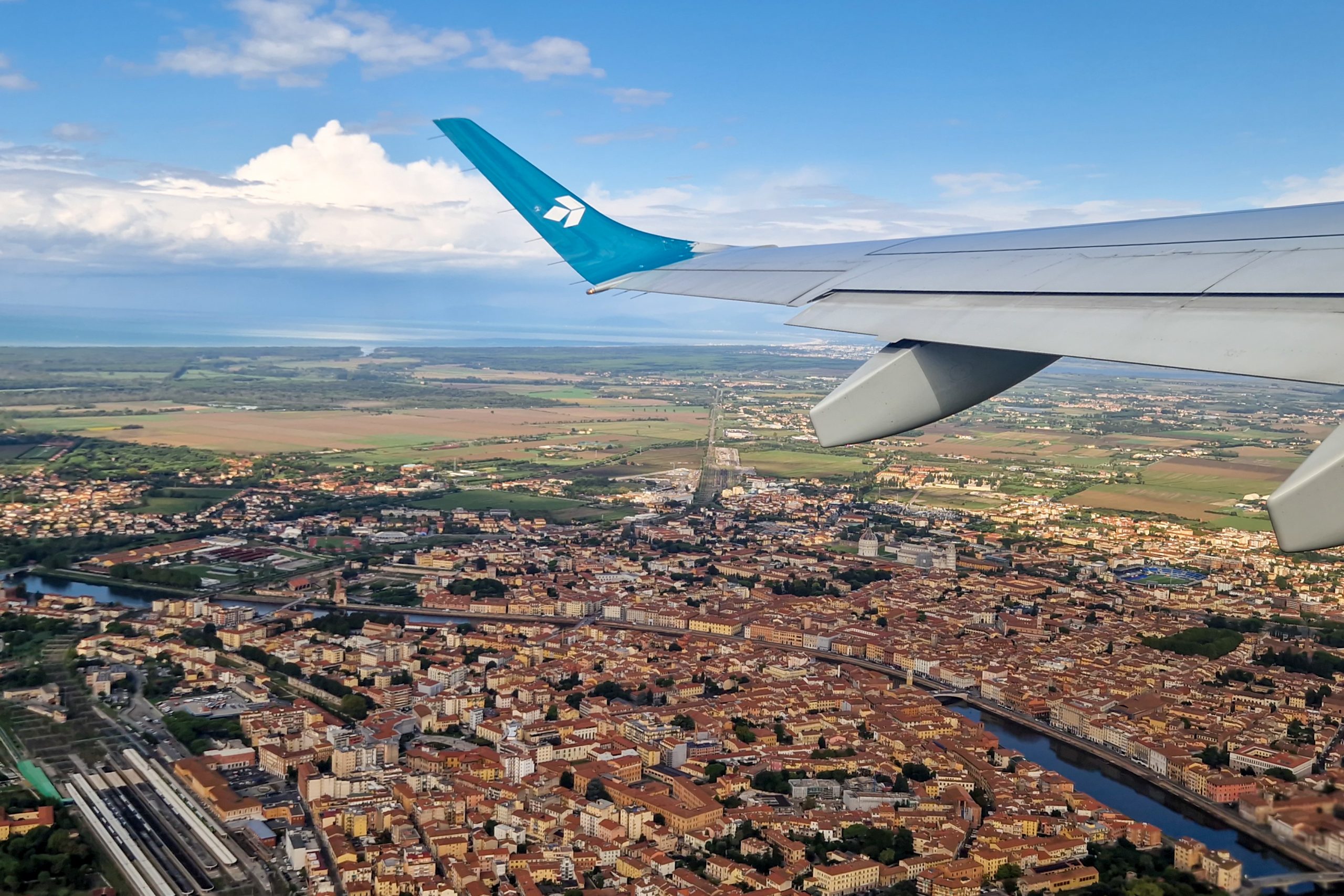 In der Luft bekamen wir am linken Fenster eine kleine Sightseeing-Tour über Pisa geboten und sahen auch das Wahrzeichen der Stadt, den Schiefen Turm.