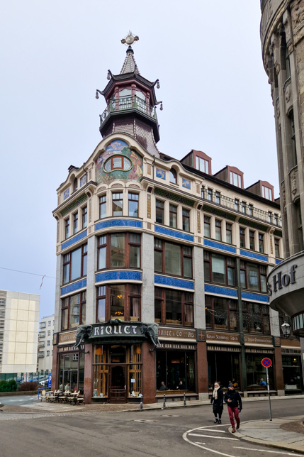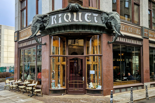 Anschließend war Zeit für eine kleine Pause. Wir schlenderten zum nahegelegenen Schuhmachergäßchen, wo das Café Riquet auf uns wartete. Schon von außen fällt das Gebäude ins Auge: Die Jugendstil-Fassade ist mit exotischen Elementen verziert, zwei Elefantenköpfe flankieren den Eingang – ein Verweis auf den Fernhandel und die koloniale Mode der damaligen Zeit.