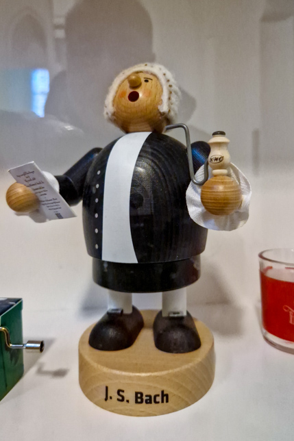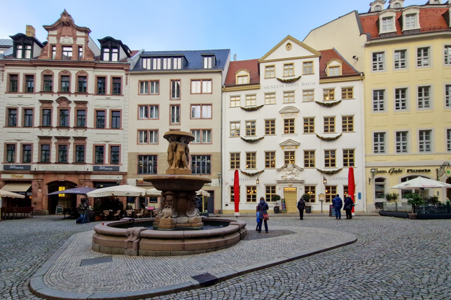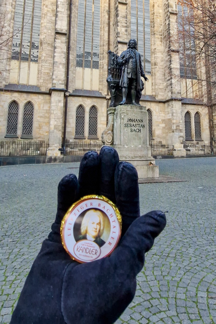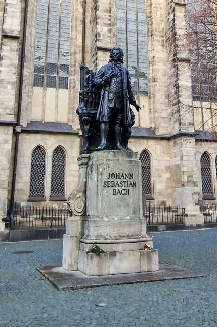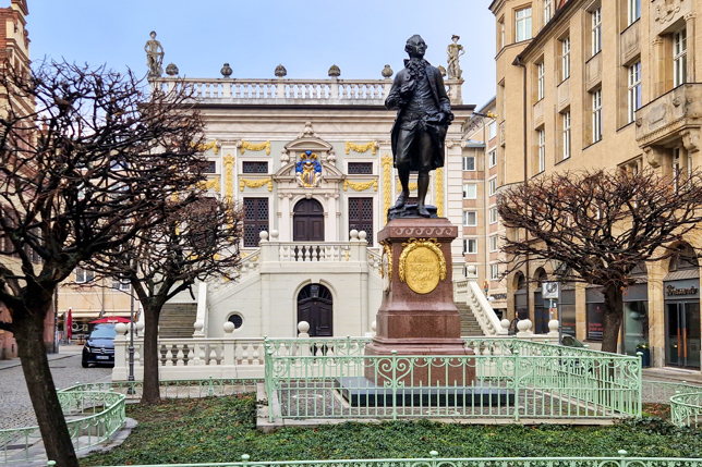 Aufgewärmt machten wir uns auf den Weg zur Thomaskirche, nur wenige Gehminuten entfernt mit Fotomotiven am Naschmarkt mit einem Goethedenkmal und am Marktplatz, wo die Buden des Weihnachtsmarkts auf den Abbau warteten.