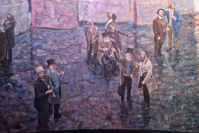 An anderer Stelle steht eine Gruppe von Malern, die Mitglieder der Pariser Kunstakademie waren und damit die alt hergebrachte Malerei mit perfekter Linienführung und Technik verkörperten. Sie bildeten den Gegenpol zu den später als Impressionisten bezeichneten Maler, zu denen auch Claude Monet gehörte. Entsprechend ihren Kunstvorstellungen sind sie in perfekter und exakter Maltechnik portraitiert.