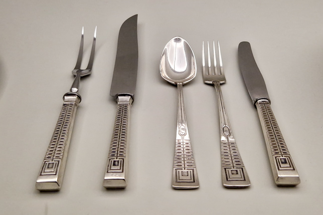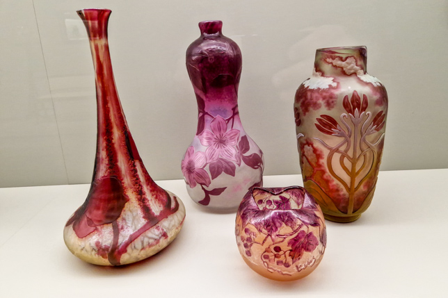 Der Rundgang durch die Jugendstil- und Art-déco-Abteilung war wie eine Zeitreise in die Welt des Designs. Wir sahen filigrane Glasarbeiten von Émile Gallé, kunstvolle Möbelentwürfe, Keramiken, Plakate und Alltagsgegenstände, die zeigten, wie sehr sich die Formensprache in jenen Jahrzehnten veränderte. Ausgehend vom Jugendstil mit ornamentreichen, verspielten Objekten mit floralen Motiven zeigte der Art déco Stil bereits eine deutlich reduziertere Formensprache mit klarer werdenden Formen und Linien. Irgendwann mündete dies im Stil des Bauhaus, mit dem wir uns in den vergangenen Tagen beschäftigt hatten. Nachfolgend ein paar ausgewählte Objekte aus der Sammlung: