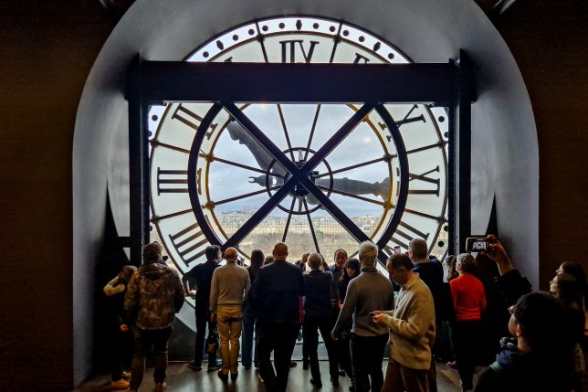Nach einem kurzen Rundgang durch die Meisterwerke des Impressionismus ließen wir den Blick durch eines der riesigen Fenster mit den charakteristischen Bahnhofsuhren über die Seine hinweg bis zum Montmartre mit der Sacré-Cœur im Hintergrund schweifen.