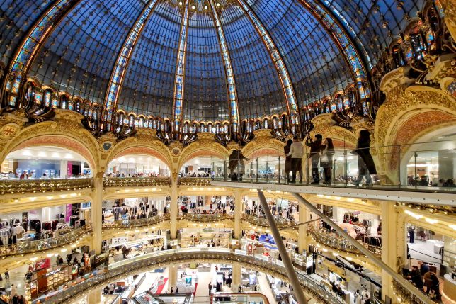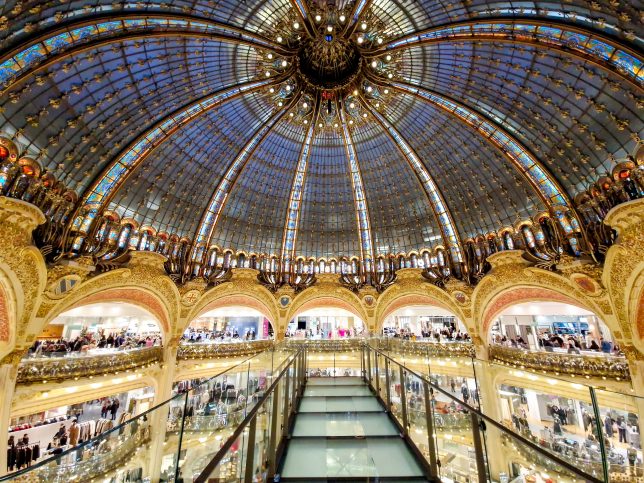 Von der Oper war es nur ein Katzensprung zu dem berühmten Pariser Kaufhaus Galeries Lafayette. Leider war die Aussichtsterrasse im obersten Stockwerk aufgrund des Sturms geschlossen, von dort hätten wir gerne den Blick über die Dächer von Paris genossen.