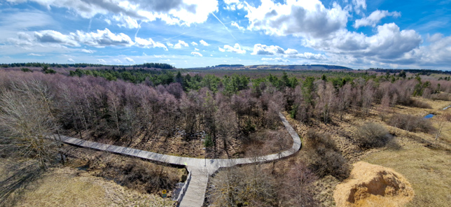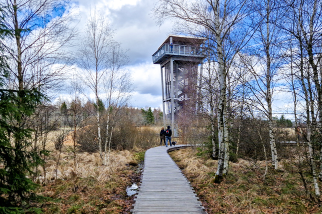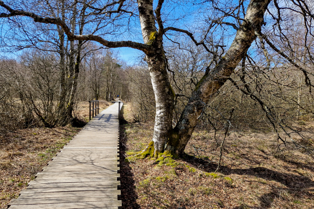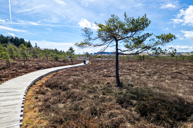 Das Moor begann sich vor etwa 12.000 Jahren, nach dem Ende der letzten Eiszeit, zu bilden. Die Torfschicht ist heute stellenweise bis zu sieben Meter dick. Hochmoore sind äußerst nährstoffarme Lebensräume mit niedrigem pH-Wert, die nur von spezialisierten Pflanzen besiedelt werden können. Das Wasserreservoir solcher Hochmoore speist sich ausschließlich aus Niederschlägen, die aufgrund einer wasserundurchlässigen Schicht nicht versickern können. Der Rundweg führte uns letztendlich zu einem Aussichtsturm, von dem man einen guten Überblick über das gesamte Moorgebiet erhält.