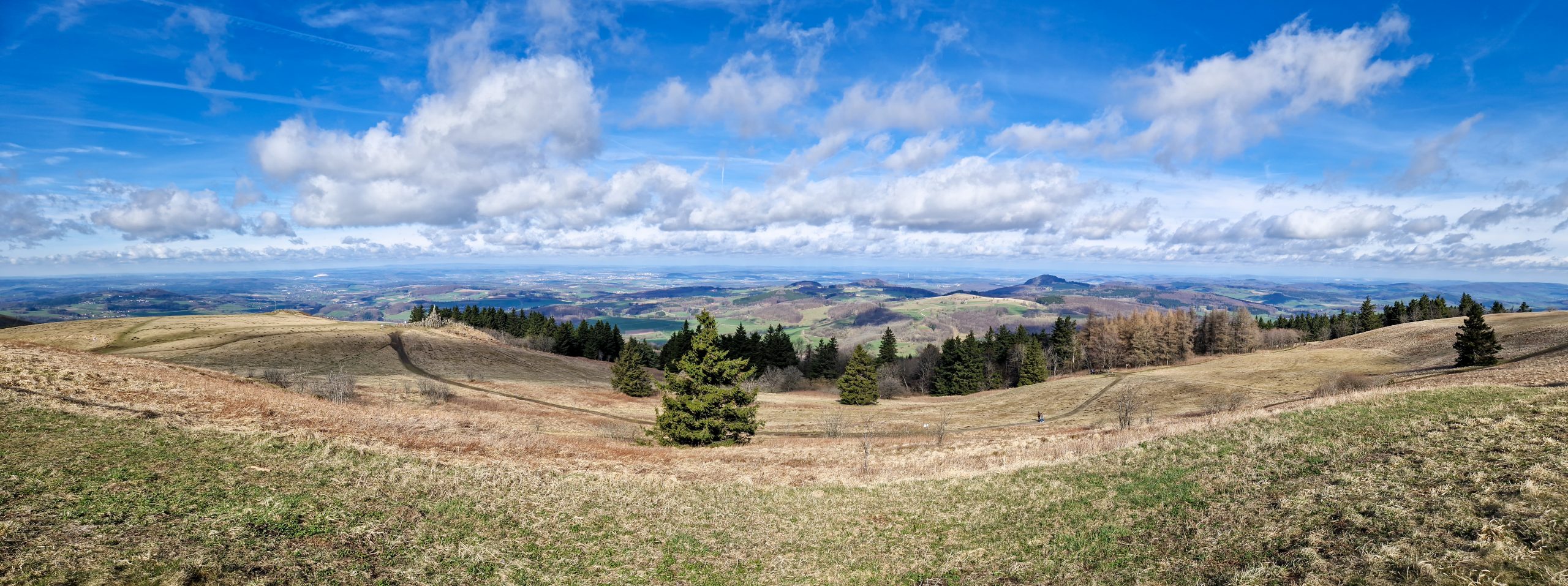 Der Ausblick vom Gipfel ist beeindruckend: An diesem windigen Tag mussten wir uns allerdings festhalten, um nicht weggeweht zu werden. Von hier oben war mit Sicherheit bereits unser nächstes Ziel, das Schwarze Moor zu erkennen, sofern wir in die richtige Richtung geblickt hätten.