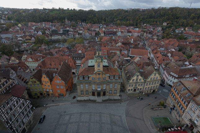 Von der Aussichtsplattform des Kirchturms, die man über 160 Stufen erreicht, hat man einen schönen Blick über die Altstadt bis auf die andere Seite des Kocher.