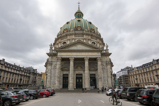 Einen kurzen Spaziergang vom Designmuseum entfernt liegt die Frederikskirche, oft auch Marmorkirche genannt. Sie bildet zusammen mit Schloss Amalienborg und der neu gebauten Königlichen Oper auf der anderen Seite des inneren Hafens eine sehr schöne Sichtachse.