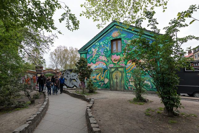 Kurze Zeit später erreichten wir einen graffitiverzierten Torbogen, den Eingang zur Freistadt Christiania. Das ehemalige Armeegelände wurde 1971 durch Hippies und Studenten besetzt. Heute steht das Gelände unter eigener Verwaltung der Bewohner. Neben Galerien und Werkstätten finden sich hier mit Duldung der Stadtverwaltung Haschisch-Verkaufsstände – dem Besucher steigt der Geruch aus allen Richtungen in die Nase.