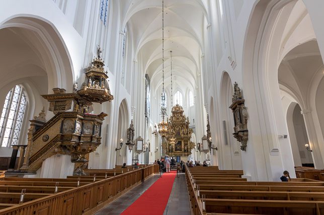 Malmö selbst ist mit seinen 300.000 Einwohnern überschaubar, die Sehenswürdigkeiten alle zu Fuß erreichbar. Erster Anlaufpunkt für uns war die Sankt Petri Kyrka aus dem 14. Jahrhundert. Dort fand gerade ein Programmpunkt des 10tägigen Malmö International Organ Festivals mit dem schwedischen Organisten Hans-Ola Ericsson statt. Die Orgelanlage der Kirche, die bis 2018 elektrifiziert und modernisiert wurde, gehört zu den größten Orgeln in Skandinavien. Sehenswert neben der Orgel ist der Kirchenaltar sowie die freigelegten mittelalterlichen Fresken in der Krämerkapelle.
