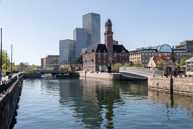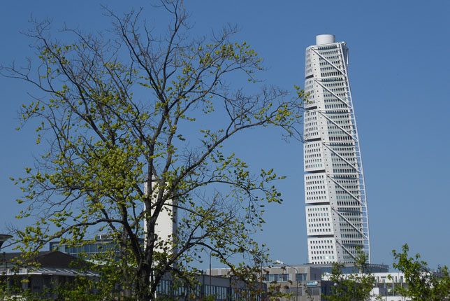 Vom Malmöhus aus sieht man in der Ferne eine weitere Sehenswürdigkeit der Stadt, die bei gutem Wetter auch in Kopenhagen zu erkennen ist: der Turning Torso des spanischen Architekten Santiago Calatrava. Der höchste Wolkenkratzer Schwedens misst 190m, beherbergt 54 Etagen und dreht sich so um seine Achse, dass das oberste Stockwerk genau um 90 Grad gegenüber dem untersten liegt.