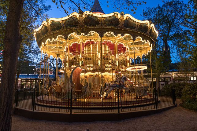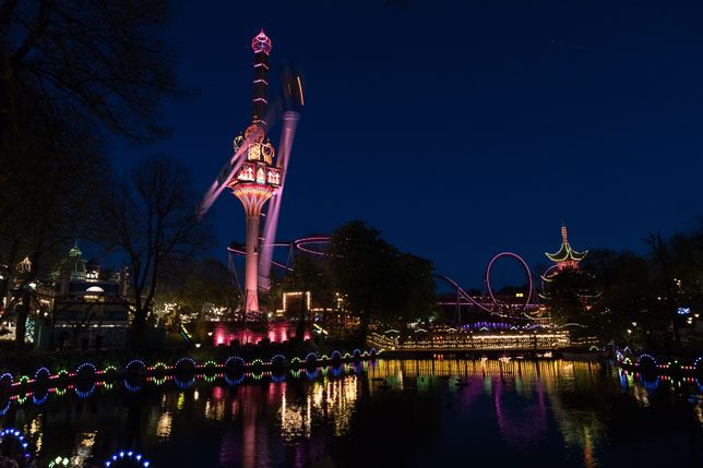 Nach dem Essen wollten wir in den Tivoli, um auch etwas von der atmosphärischen Beleuchtung im Park zu sehen: Der Freizeitpark mit Fahrgeschäften, Restaurants und Cafés ist Dänemarks größte Touristenattraktion mit jährlich 4,4 Mio. Besuchern. Anders als zum Beispiel im Prater in Wien bezahlt man 130 DKK Eintritt, nur um in den Park zu gelangen. Inklusive der uneingeschränkten Nutzung aller Fahrgeschäfte beläuft sich der Eintritt auf rund 400 DKK. Wir wollten den Tag überleben und verzichteten auf die Fahrt mit Achterbahn inkl. Looping, Freefall-Tower oder Kettenkarussell in schwindelerregender Höhe und schlenderten stattdessen ein wenig durch den Park.