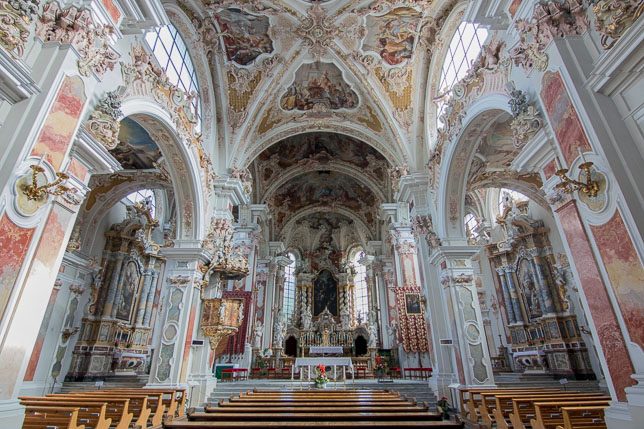 Die Führung startete mit dem Besuch der Klosterkirche, in dessen überbordend barock ausgestattetem Innenraum angeblich 356 Engel zu sehen sind – wir konnten der Versuchung widerstehen, nachzuzählen.