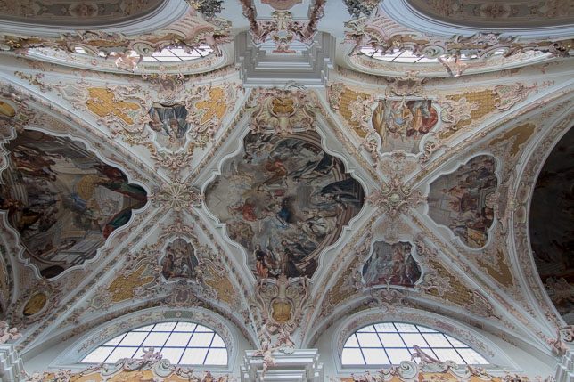 Im Stifts-Museum und der Bibliothek ist Fotografieren nicht erlaubt, sicherlich sehr zum Verdruss eines einzelnen Touristen, der uns bereits im Kreuzgang aufgefallen war, da er jedes Detail mit Blitz ablichtete. Im Museum sind wertvolle historische Altäre und andere Kirchenschätze ausgestellt. Die Stiftsbibliothek stellt am Übergang vom Rokoko zum Klassizismus einen der beeindruckendsten Bibliothekssälen des süddeutschen Raums dar. In 42 Bücherschränken mit geschnitzten Aufsätzen werden etwa 20.000 Bände aufbewahrt – weitere knapp 75.000 Bände finden in den Nebenräumen Platz.