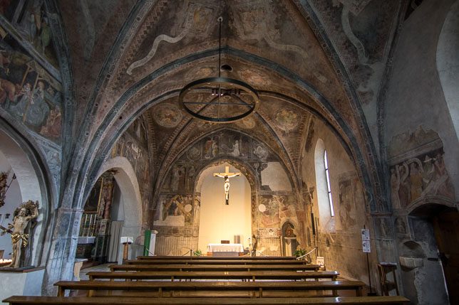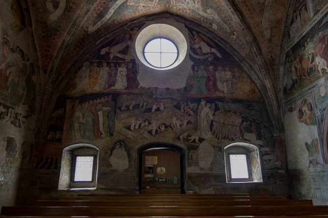 Ein Blick in die Heilig-Geist-Kirche offenbarte eine reiche Ausmalung des gesamten Kirchenschiffs. Insbesondere die dem Altar gegenüberliegende Seite war interessant, aber auch ein bisschen gruselig: dort wird das jüngste Gericht dargestellt – ein Teil der Verstorbenen wird zum Leben erweckt und steht aus den Gräbern auf, während ein anderer Teil gemeinschaftlich in die Hölle geführt wird. Wer wollte da nicht zu Lebzeiten gottgefällig wirken.