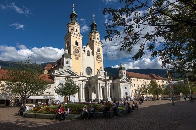 Nun wurde es Zeit, nach Brixen zu fahren, wir hatten uns am Vormittag telefonisch zu einer einstündigen (mit BrixenCard kostenlosen) Stadtführung um 17 Uhr angemeldet. Ungefähr 50 andere Gäste wollten mehr über die Stadt, ihre Sehenswürdigkeiten und die Geschichte wissen – darunter eine einzige Italienerin, die des Deutschen nicht mächtig war, so dass wir immer ausreichend Zeit für Fotos hatten, während die Gästeführerin das zuvor in Deutsch Erzählte ins Italienische übersetzte.
